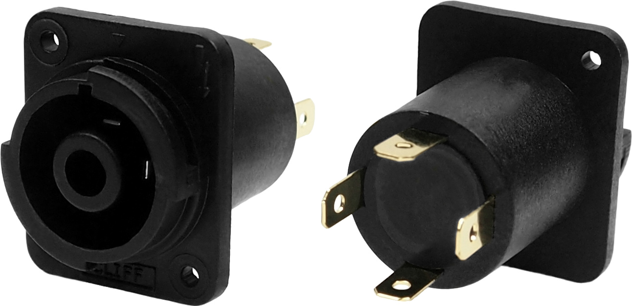 Convenient FASTON®, screw and solder connections. Chassis connectors are air-tight and fit a standard XLR-form-factor, panel cut-out. Our original black versions remain available. However, we suggest users change to the HV and LV versions for new designs.
