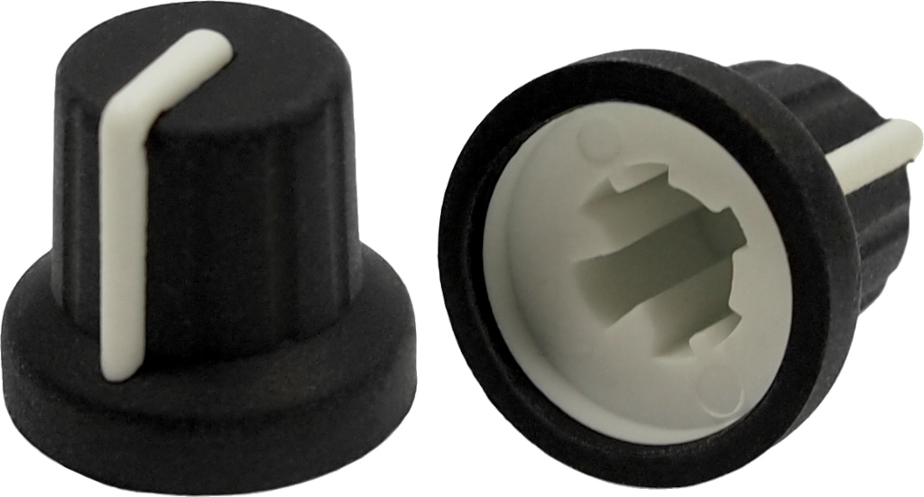 C18/SKT Knob and skirt in one piece. The skirt can have a marker line or printed numbers 0-10. Push fit. Coloured Colored caps are not available.